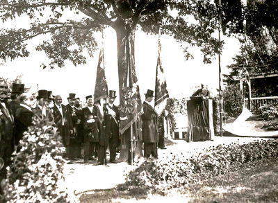 Unmittelbar am Denkmal waren die Fahnen der Kriegervereine postiert und die vereinigten Weinheimer Kapellen umrahmten die Feierstunde. Karl Zinkgräf, der Vorsitzende des Gemeinnützigen Vereins, sprach die Grußworte und übergab die Gedenkstätte in die Obhut der Stadt Weinheim. Für sie würdigte Bürgermeister Heinrich Ehret die Initiative des Gemeinnützigen Vereins. Fabrikant Heinrich Kleeh, Vorsitzender des Kriegervereins Weinheim, erinnerte in der Festrede die versammelten Veteranen des 1870-er Krieges an die Schlachten von Weißenburg, Wörth, Metz, Verdun und auf den Spicherer Höhen, an den Fall von Straßburg und „an die glänzenden Tage badischer Waffen“, die den Anlass für dieses Denkmal gaben.